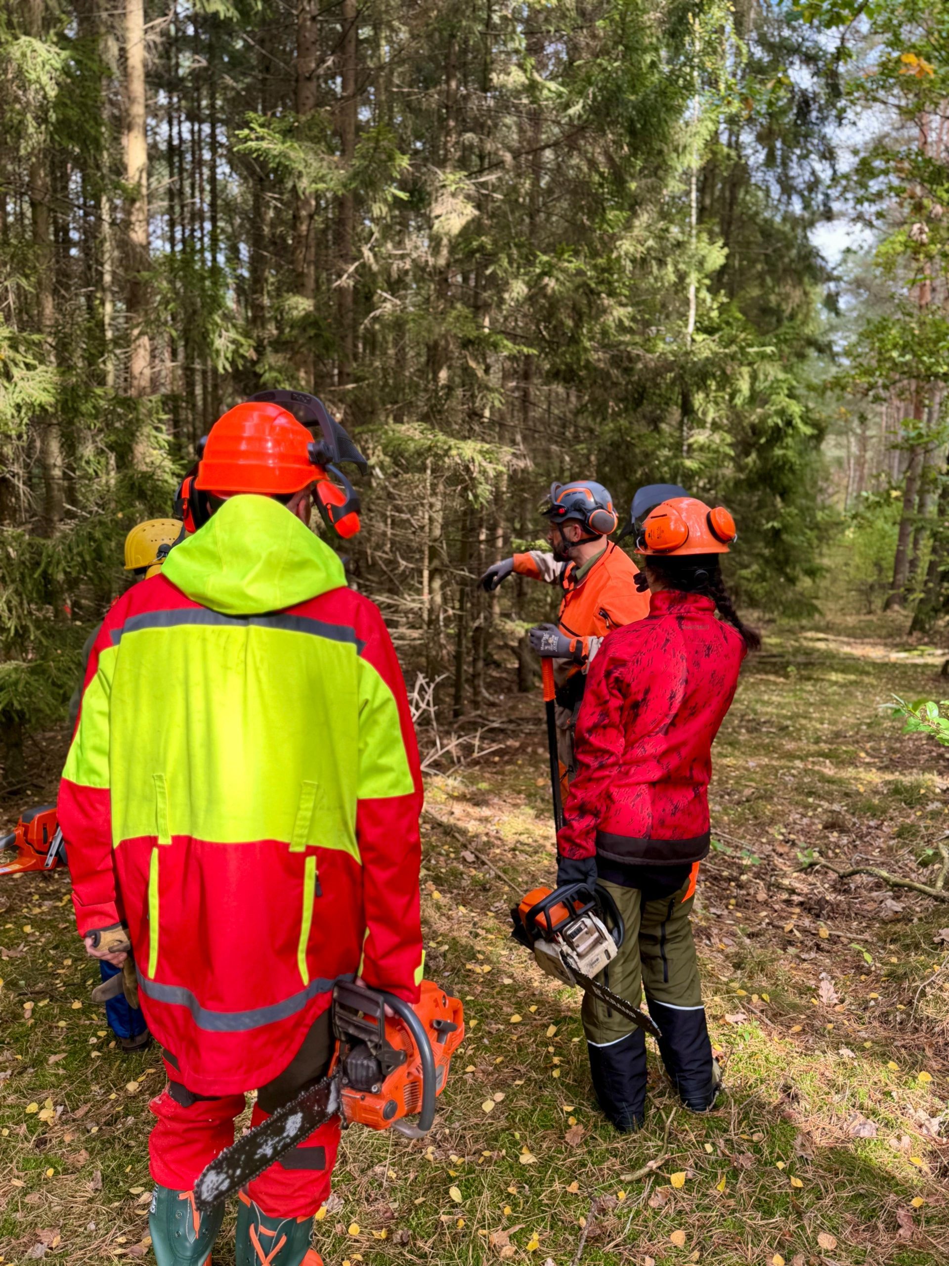 Praktische Übungen im Wald oder auf dem Holzlagerplatz